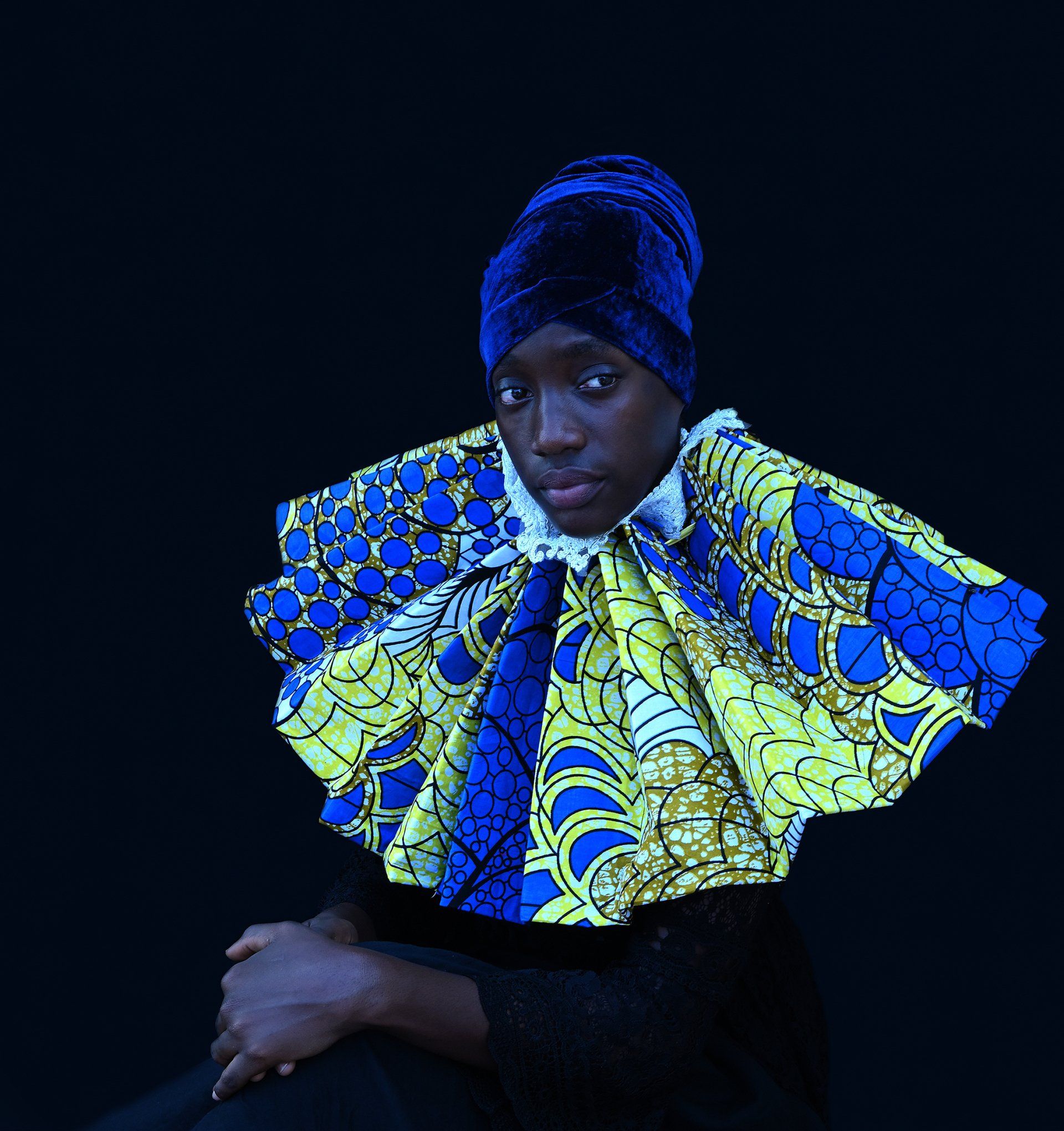 In her photos she stages portraits of African characters dressed in wax collars accompanied by a video.