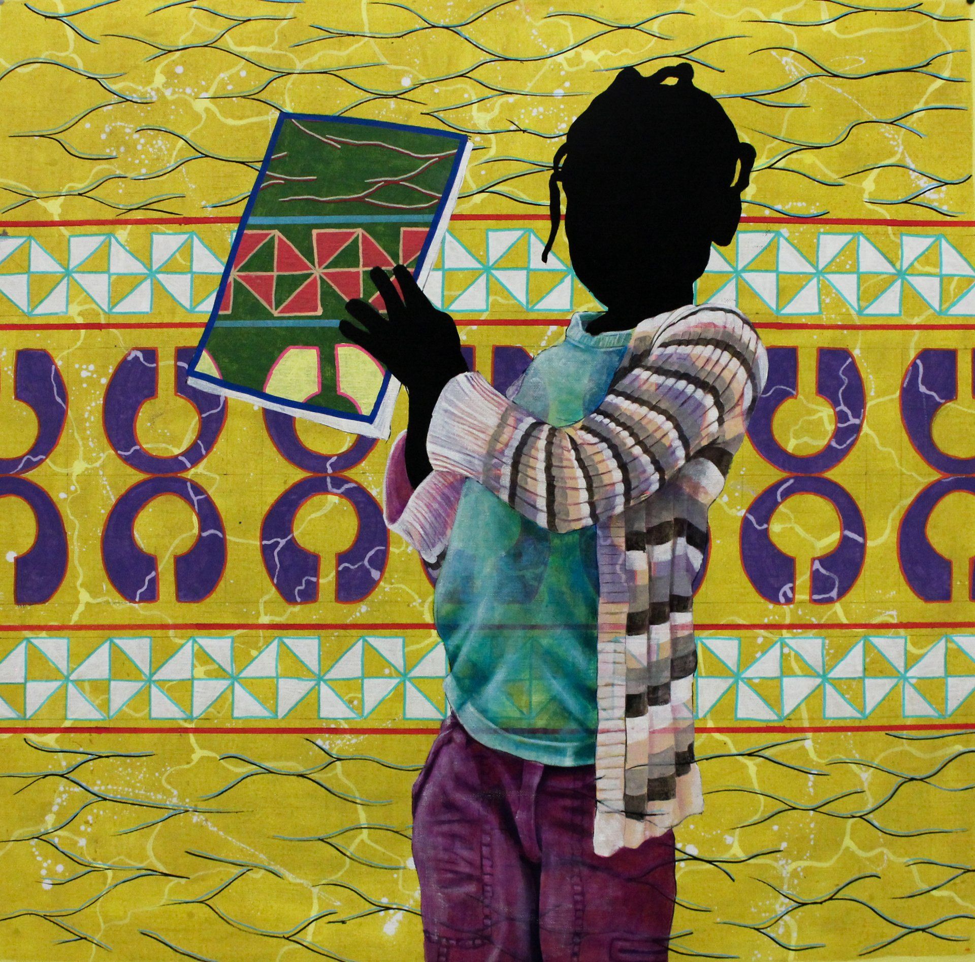 In her artistic work, prints can symbolise status, hierarchy and allegiance to certain tribes. The colours have specific meanings: black represents longevity, maturity and mourning, and green fertility and generative forces, for example.